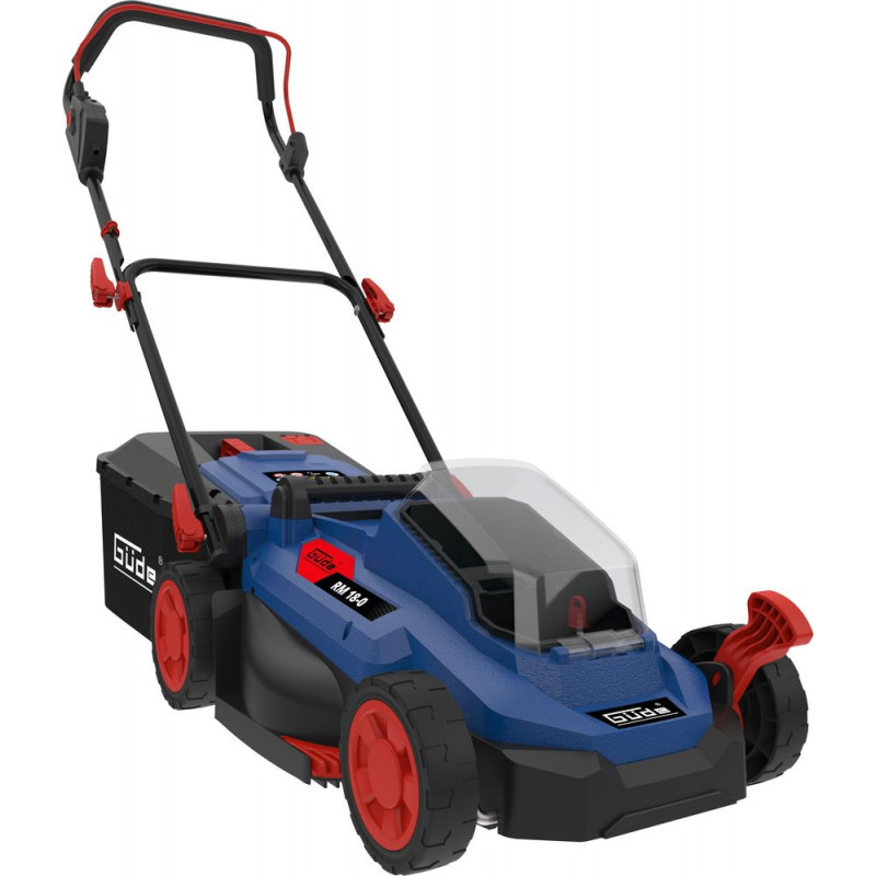 : GüdeAkumulátorová kosačka na trávnik zo série akumulátorových systémov 18V E3. Bezkefkový motor, 5-stupňové centrálne nastavenie výšky, ergonomicky tvarované, sklopiteľné a výškovo nastaviteľné riadidlá. 30-litrový zberný kôš s ukazovateľom stavu naplnenia, mulčovací klin.