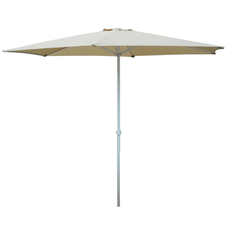 : DEMAHliníkový slnečník so 6 rebrami. Tie sú otvárané smerom nahor systémom kľuka-kladka. Hliníkový rám je ošetrený bielou farbou a zaisťuje tak skvelý vzhľad. Skrutkové spoje kľuky a rebier. Poťah je vyrobený z polyesteru a je šitý kvalitnými dvojitými švami.