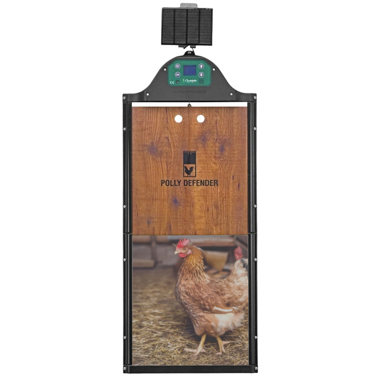 Polly AutoDefender sú moderné automatické dvierka ku kurníku , ktoré sa postarajú o bezpečie vašich sliepok každý deň – bez ohľadu na ročné obdobie, počasie alebo vašu neprítomnosť. Otváranie a zatváranie prebieha úplne automaticky , presne podľa vášho zvoleného nastavenia - teda úrovne svetla, alebo nastaveného času. Večer sa dvierka bezpečne uzavrú, ráno sa znovu otvoria – bez starostí, bez zhonu, bez rizika. V balení Komplet nájdete ako ovládaciu jednotku so solárnym panelom, tak panel dvierok a koľajnice.