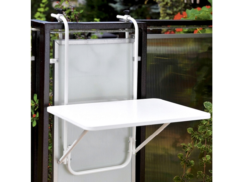 : DajarSkladací stôl, ktorý môžete jednoducho zavesiť na balkón. Nastaviteľná šírka záložiek (max. 10 cm).