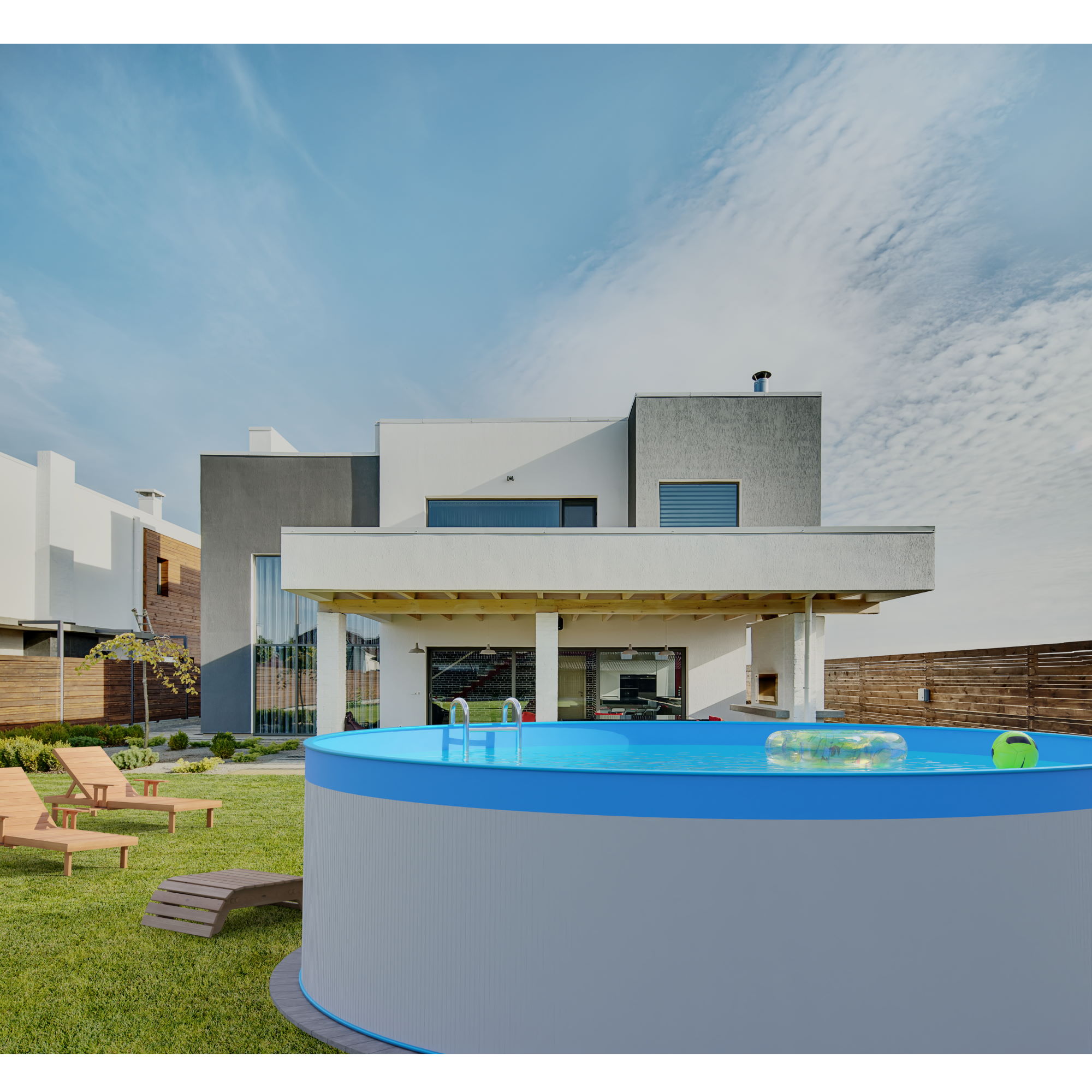 : CFNadzemný bazén s oceľovou stenou (biela) a fóliou (modrá) s rozmermi 3,5 x 0,9 m. Žiarovo pozinkovaná oceľ chránená špeciálnym bazénovým náterom. Bazén je určený na vlastnú montáž.