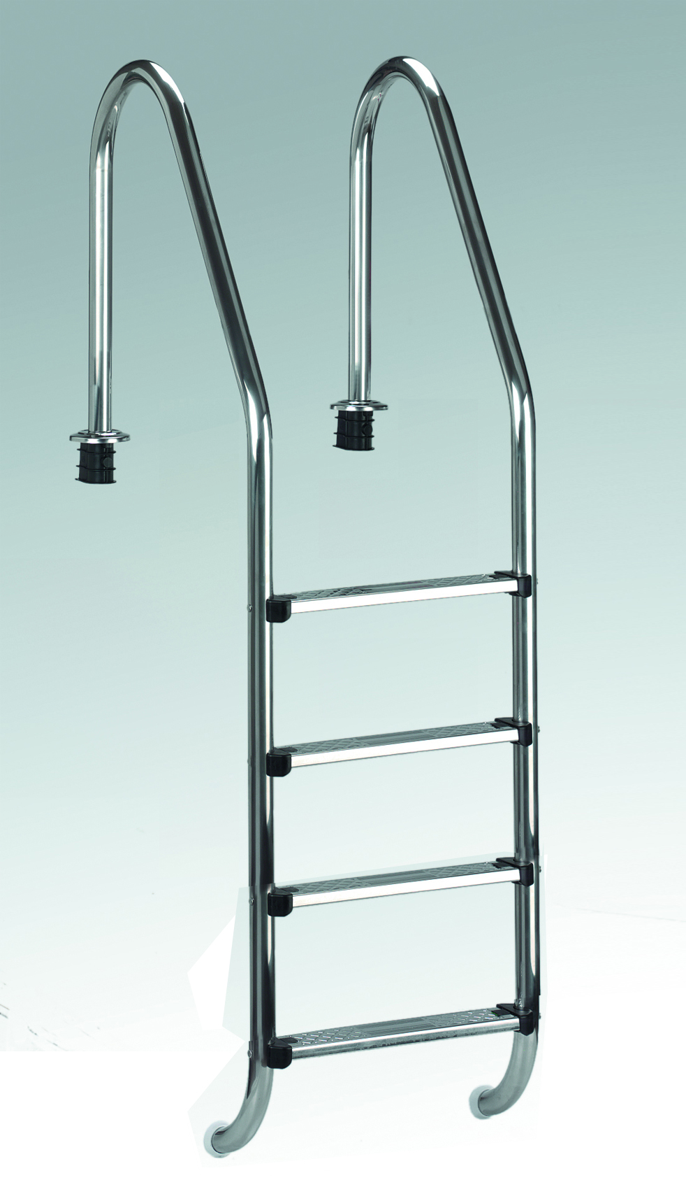 Technické údaje:Bazénový rebrík z nehrdzavejúcej ocele V2A, priemer 43 mm4 plastové protišmykové stupneNosnosť do 150 kgVhodný pre čiastočne alebo úplne zapustené bazény s hĺbkou do 150 cmVrátane kotevnej objímky na zabetónovanie