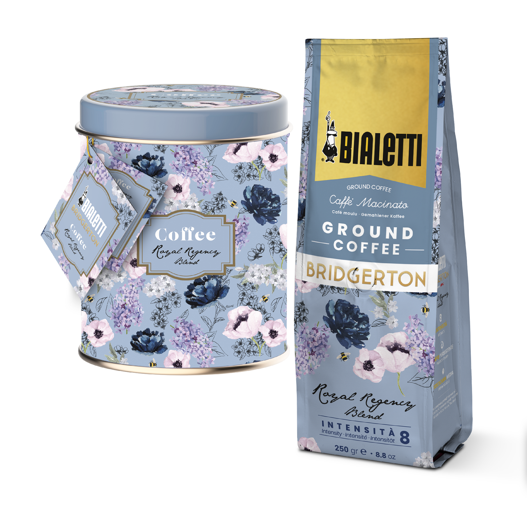 : BialettiStředně pražená mletá káva o poměru 80% Arabica - 20% Robusta. Přichází v exkluzivní Bridgerton plechovce.