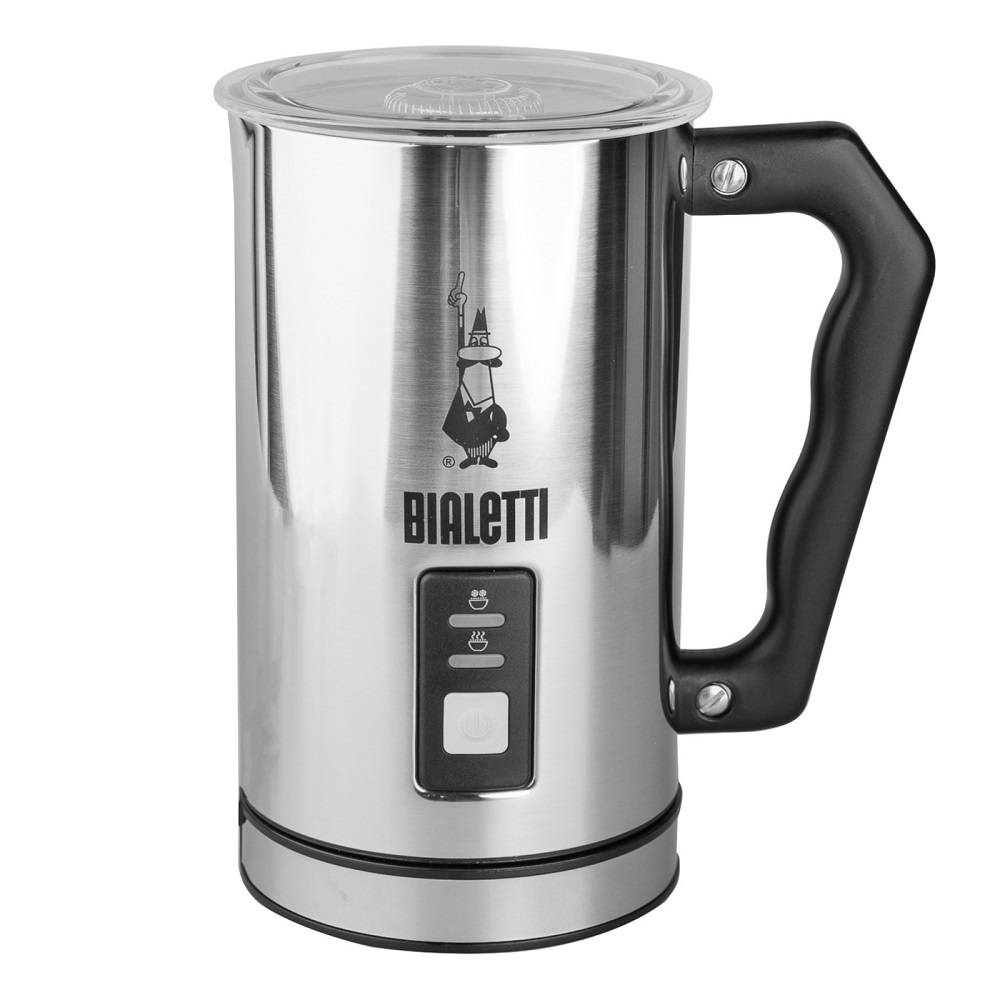 : BialettiElektrický napeňovač mlieka s nepriľnavým povrchom vnútornej časti. Prístroj dáva na výber medzi tvorbou studenej a teplej peny, pričom umožňuje taktiež samotný ohrev bez napenenia. Jedno použitie napeňovača vytvorí 115 ml mliečnej peny alebo ohreje 240 ml mlieka.