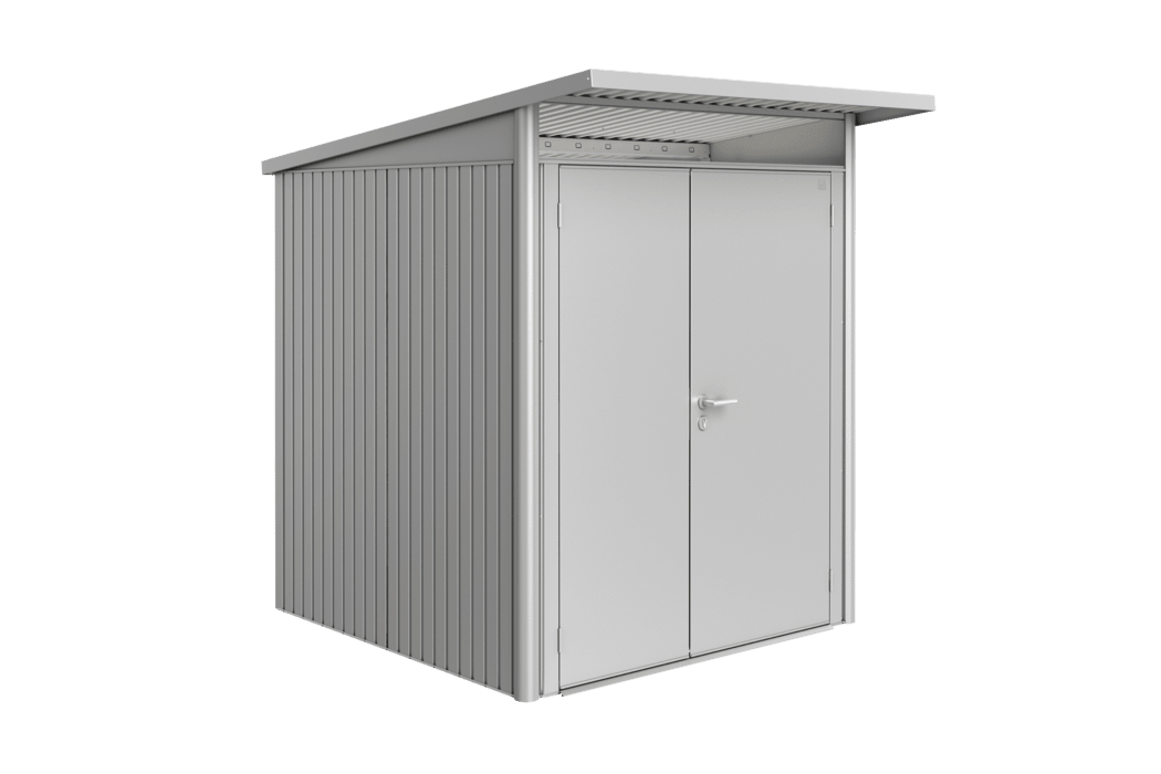 1584.55 Biohort Avantgarde A1 plechový domček - dvojkrídlové dvere 180 x 220 x 218 cm, strieborný metalický