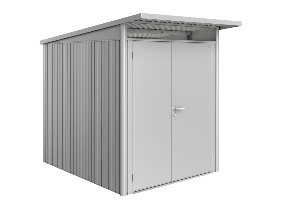 1747.15 Biohort Avantgarde A2 plechový domček - dvojkrídlové dvere 180 x 260 x 218 cm, strieborný metalický