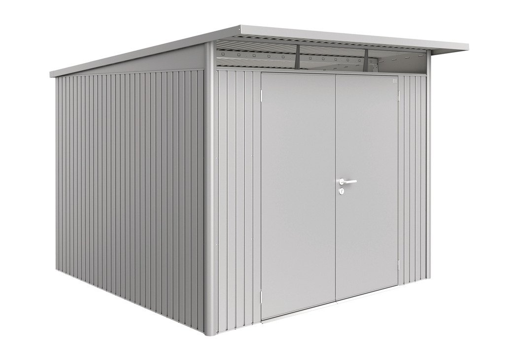 Biohort Avantgarde A7 plechový domček - dvojkrídlové dvere 260 x 300 x 218 cm, strieborný metalický
