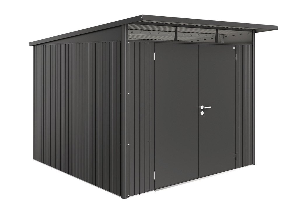 2332.52 Biohort Avantgarde A7 plechový domček - dvojkrídlové dvere 260 x 300 x 218 cm, tmavosivý metalický