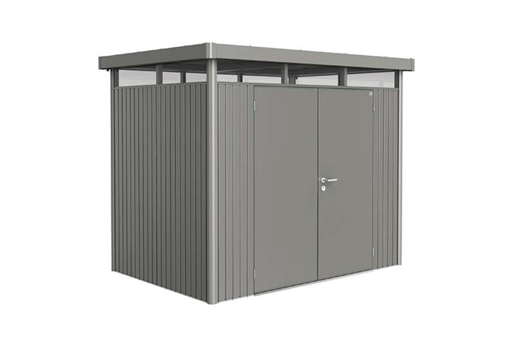 Biohort HighLine H2 plechový domček - dvojkrídlové dvere 275 x 195 x 222 cm, strieborný metalický