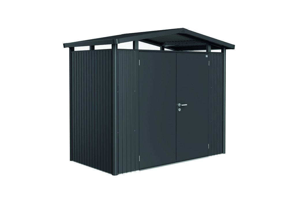 Biohort Panorama P1 plechový domček - dvojkrídlové dvere 273 x 158 x 227 cm, tmavosivý metalický