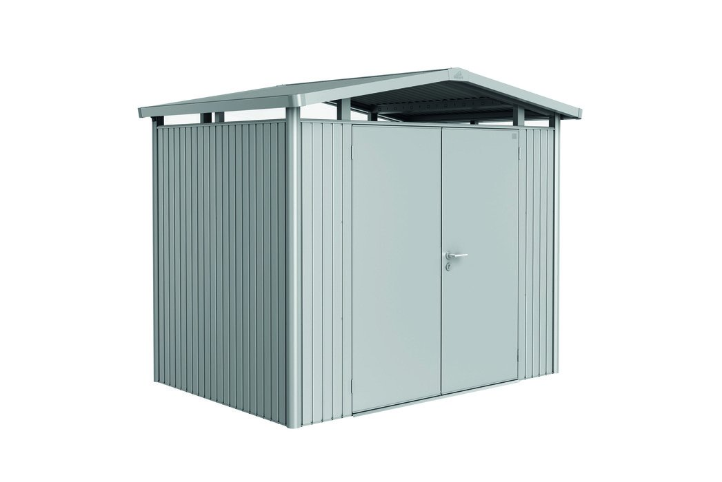 2576.42 Biohort Panorama P2 plechový domček - dvojkrídlové dvere 273 x 198 x 227 cm, strieborný metalický
