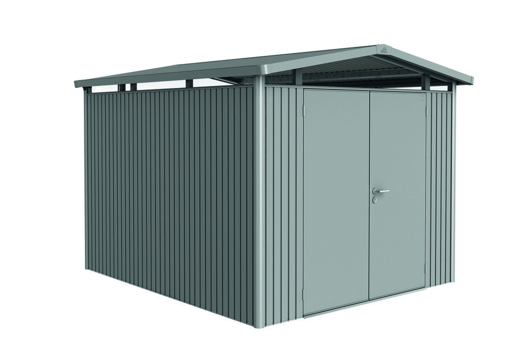 Biohort Panorama P5 plechový domček - dvojkrídlové dvere 273 x 318 x 227 cm, strieborný metalický