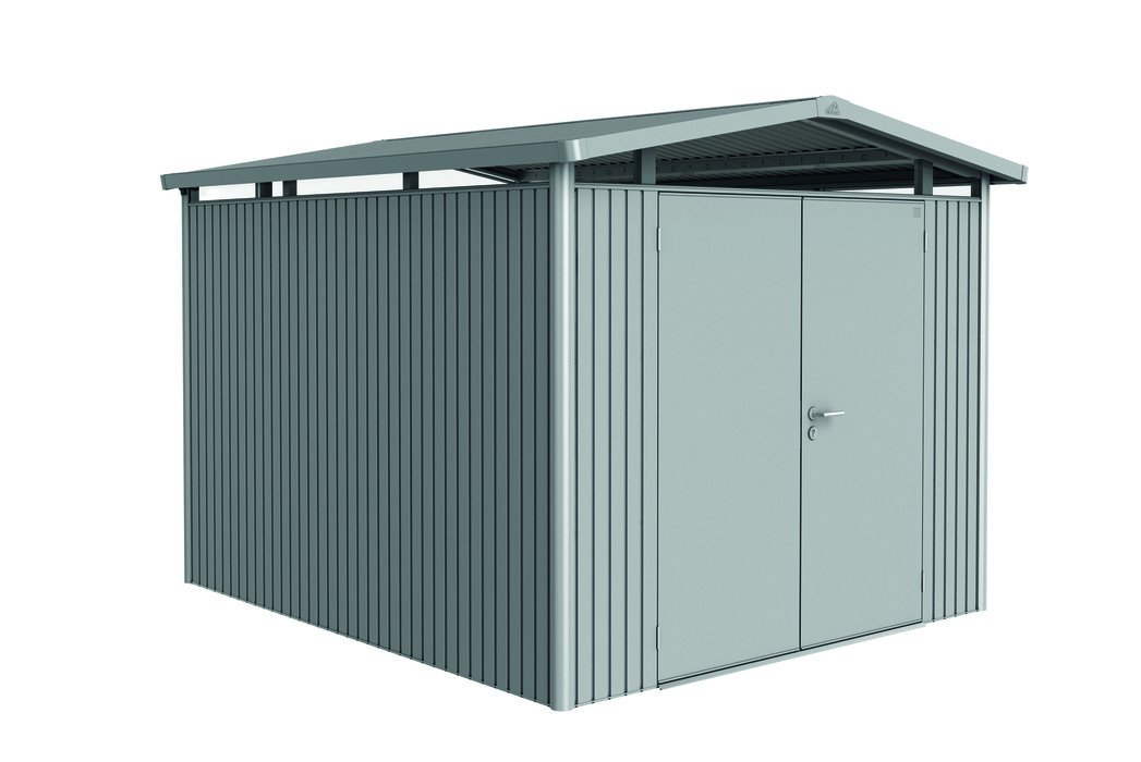 Biohort Panorama P5 plechový domček - dvojkrídlové dvere 273 x 318 x 227 cm, strieborný metalický