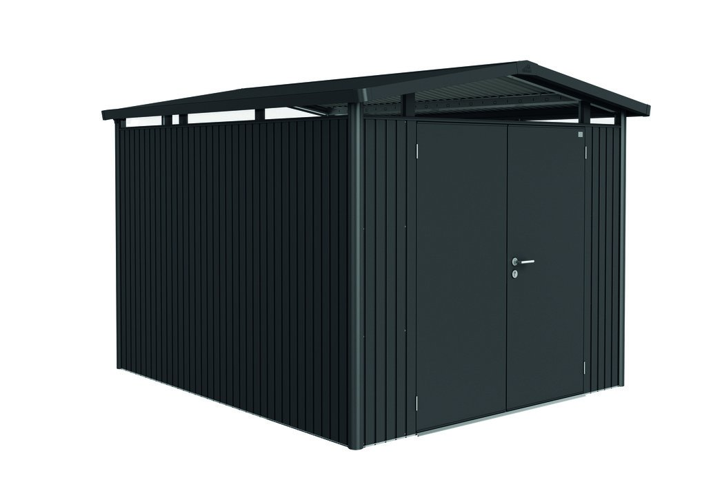 3161.79 Biohort Panorama P5 plechový domček - dvojkrídlové dvere 273 x 318 x 227 cm, tmavosivý metalický