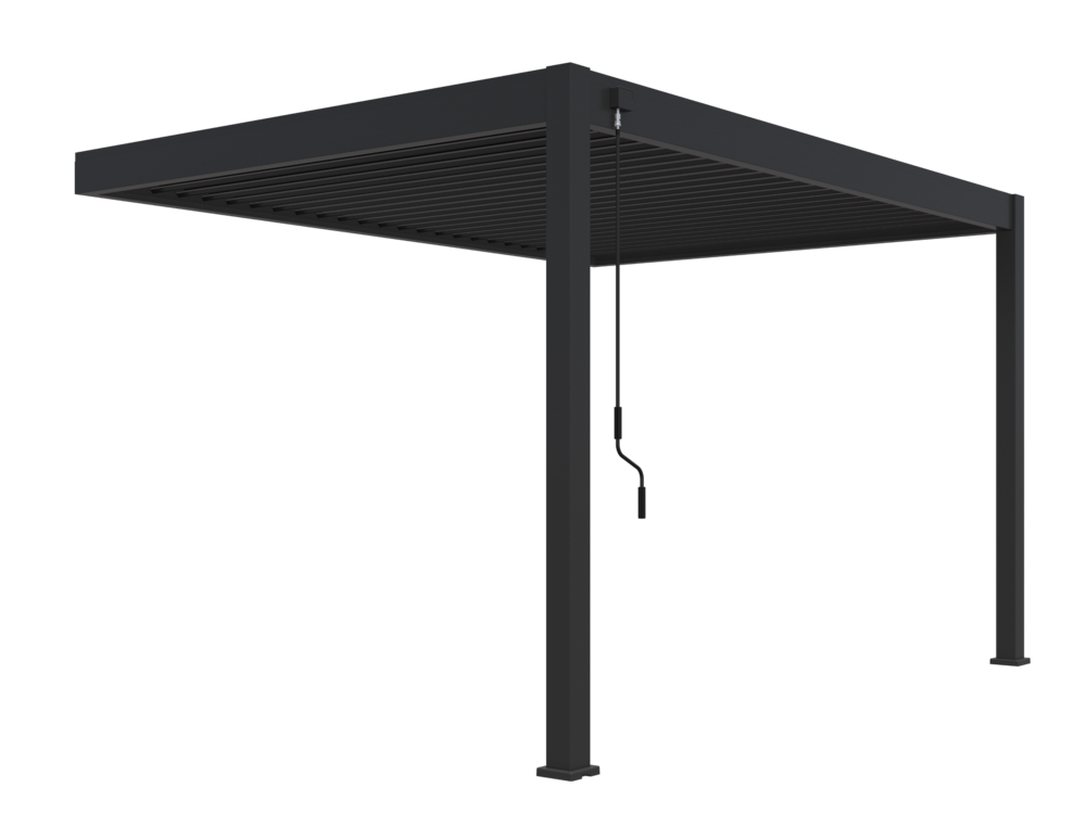 : RojaplastPrémiová záhradná hliníková bioklimatická pergola s rozmermi 4x3 metre inštalovaná do steny je ideálnym spôsobom zastrešenia vášho vonkajšieho posedenia. Veľmi pevná a stabilná konštrukcia v antracitovej farbe RAL 7016 s matným povrchom sa hodí do každého priestoru.