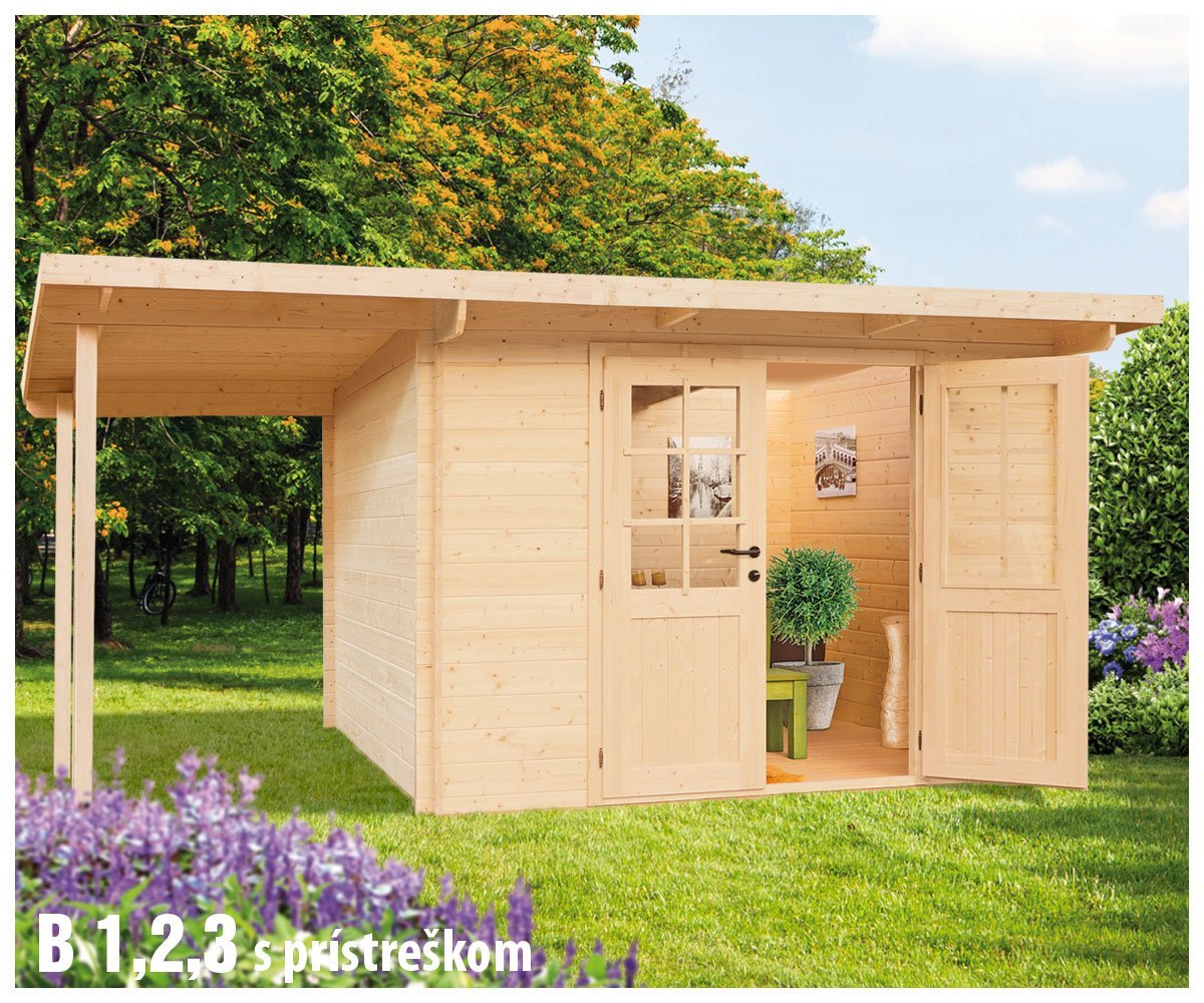 1543.90 BPP B3 záhradná chatka s prístreškom, 445 x 300 cm, 28 mm 582023