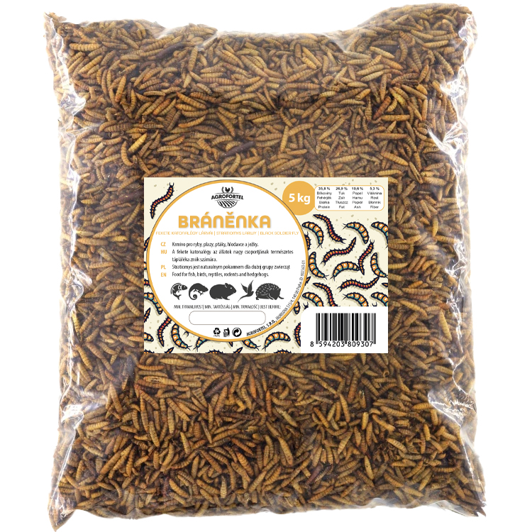 : AgrofortelBranenka je prirodzenou potravou pre veľkú skupinu živočíchov. Sušené larvy bránenky sú 100% prírodné doplnkové krmivo vtákov, rýb, plazov ale aj drobných cicavcov, ako sú ježkovia, myši alebo potkany.