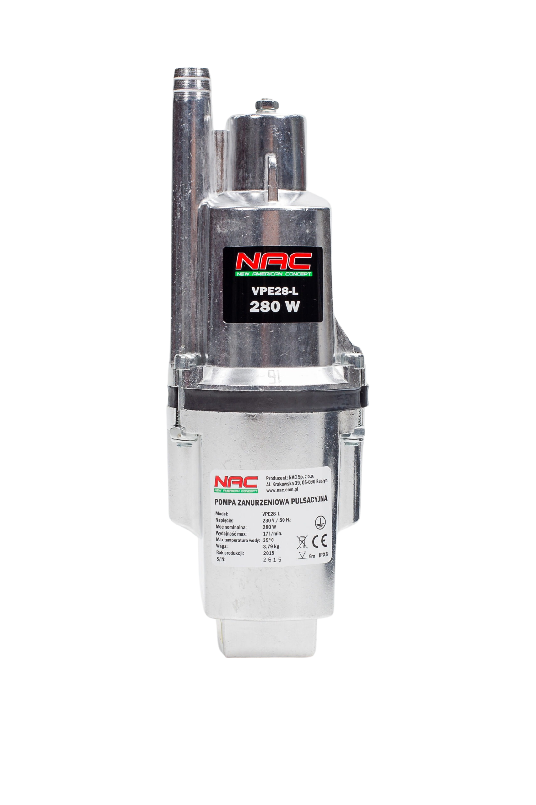 Ponorné čerpadlo, elektrický motor s výkonom 280 W, ponor do hĺbky až 5 m. Maximálny výkon sania 17 l/min, maximálna hĺbka ponoru 5 m, kábel s dĺžkou 10 m, napájacie napätie: 230 V.