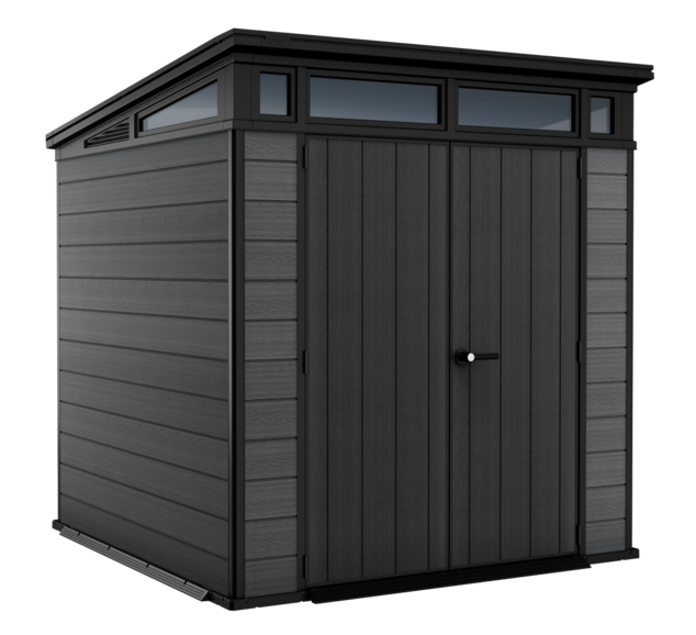 : KeterBezúdržbový domček CORTINA 7x7 je vyrobený z jedinečného materiálu EVOTECH (drevo-plast) a má robustnú konštrukciu s dvojitými stenami. Okrem toho je vybavený pevnou konštrukčnou strechou, širokými dvojitými dverami a odolnou podlahou s nosnosťou 150 kg na m2.