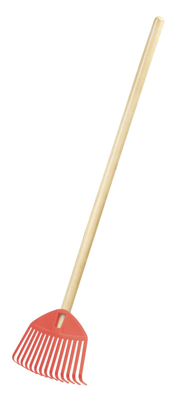 Detské hrable FOCUS BABY s drevenou rukoväťou 71 cm - farba: koralová