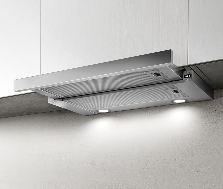: RavalTradePrevedenie: nerezRozmery: do skrinky šírka 60 cmOsvetlenie: LED 2x2,5WSací výkon minimálny / maximálny: 240 - 480 (581) m3/hodVýkon motora : 800 m3/hodHlučnosť minimálna / maximálna: 44 - 61 (65) dB(A)Priemer výstupného otvoru: 150 mmPachový filter uhlíkový: CFC0140343 (nie je súčasťou balenia)Long Life filter: CFC0162221 (nie je súčasťou balenia)Viac info na: www.elica.