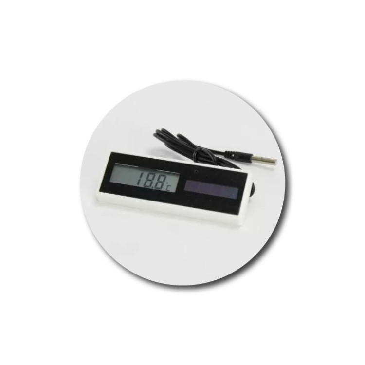 Tento digitálny teplomer je napájaný zo solárneho článku nevyžaduje batérie , čo z neho robí veľmi praktickú voľbu. S dĺžkou kábla cca 1 m je ideálny pre odchovne hydiny, klietky a ďalšie priestory, kde treba sledovať teplotu. Tento teplomer nie je vhodný na použitie v liahňach.