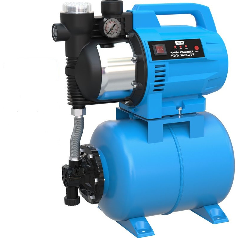: GüdeDomáca vodáreň s telesom čerpadla z nárazu odolného plastu, nádrž z ocele, obežné koleso z norylu, mechanické tesnenie, skrutka na vypúšťanie vody, vypínač, tepelná ochrana a spínač ochrany motora, automatický tlakový spínač s ochranou proti chodu nasucho.