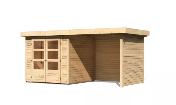 1679.40 Drevený domček KARIBU ASKOLA 2 + prístavok 240 cm vrátane zadnej a bočnej steny (77722) natur LG3213