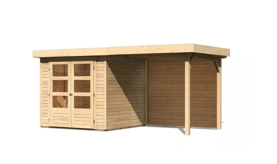 Drevený domček KARIBU ASKOLA 2 + prístavok 240 cm vrátane zadnej steny (9164) natur LG3210