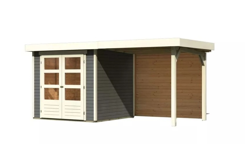 Drevený domček KARIBU ASKOLA 2 + prístavok 240 cm vrátane zadnej steny (9165) terragrau LG3211