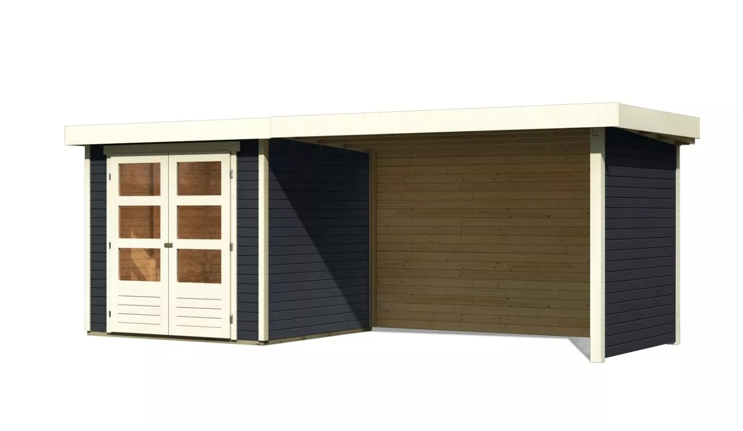 Drevený domček KARIBU ASKOLA 2 + prístavok 280 cm vrátane zadnej a bočnej steny (38659) antracit LG3224