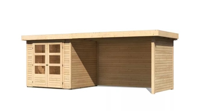 Drevený domček KARIBU ASKOLA 2 + prístavok 280 cm vrátane zadnej a bočnej steny (77724) natur LG3221