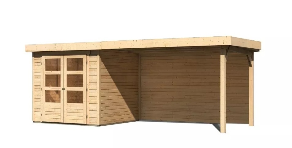 Drevený domček KARIBU ASKOLA 2 + prístavok 280 cm vrátane zadnej steny (9167) natur LG3218