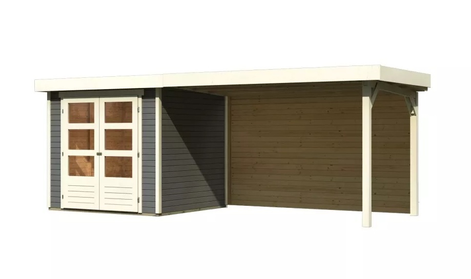 Drevený domček KARIBU ASKOLA 2 + prístavok 280 cm vrátane zadnej steny (9168) terragrau LG3219