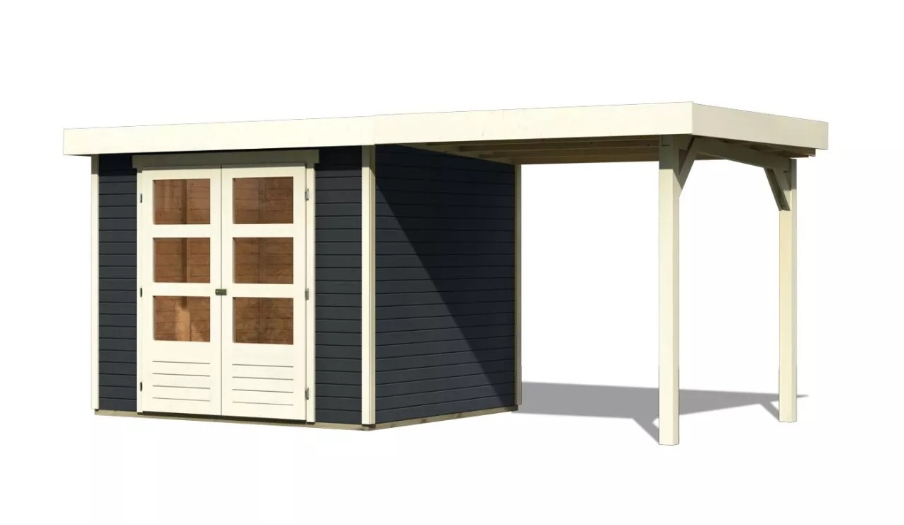Drevený domček KARIBU ASKOLA 3 + prístavok 240 cm (38662) antracit LG3230
