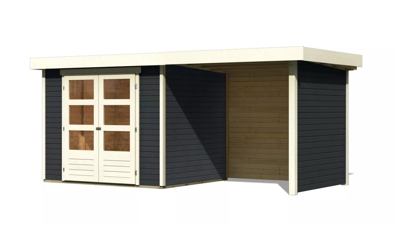 Drevený domček KARIBU ASKOLA 3 + prístavok 240 cm vrátane zadnej a bočnej steny (38664) antracit LG3236