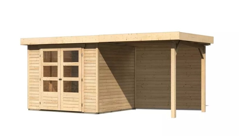 Drevený domček KARIBU ASKOLA 3 + prístavok 240 cm vrátane zadnej steny (9170) natur LG3231