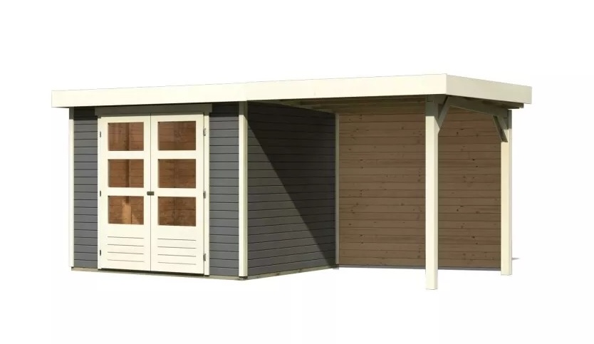 Drevený domček KARIBU ASKOLA 3 + prístavok 240 cm vrátane zadnej steny (9171) terragrau LG3232