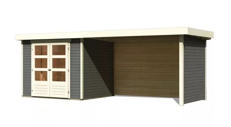Drevený domček KARIBU ASKOLA 3 + prístavok 280 cm vrátane zadnej a bočnej steny (82925) terragrau LG3241