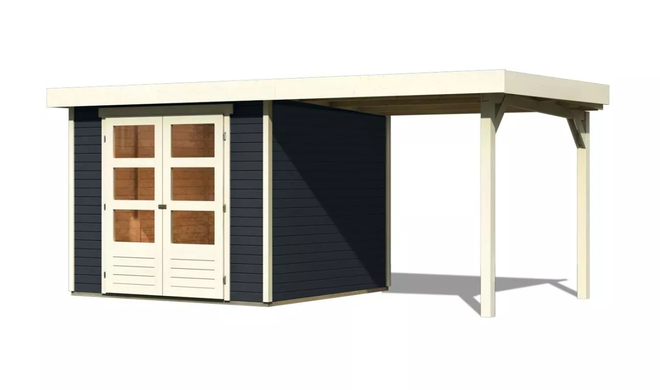 Drevený domček KARIBU ASKOLA 3,5 + prístavok 240 cm (48912) antracit LG3188