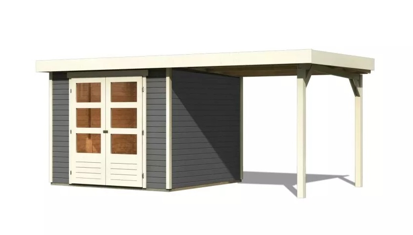 Drevený domček KARIBU ASKOLA 3,5 + prístavok 240 cm (9144) terragrau LG3187