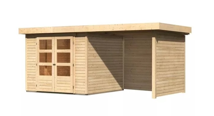Drevený domček KARIBU ASKOLA 3,5 + prístavok 240 cm vrátane zadnej a bočnej steny (77719) natur LG3246