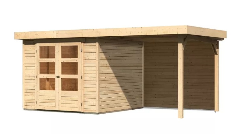 Drevený domček KARIBU ASKOLA 3,5 + prístavok 240 cm vrátane zadnej steny (9176) natur LG3243