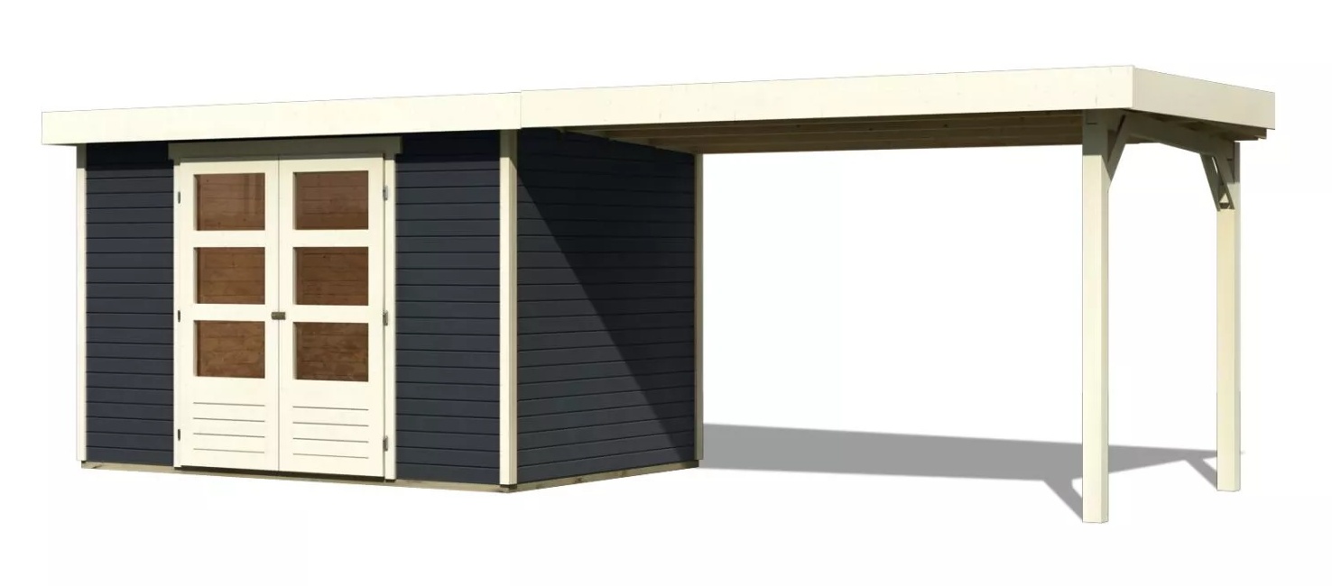 Drevený domček KARIBU ASKOLA 4 + prístavok 280 cm (38673) antracit LG3266