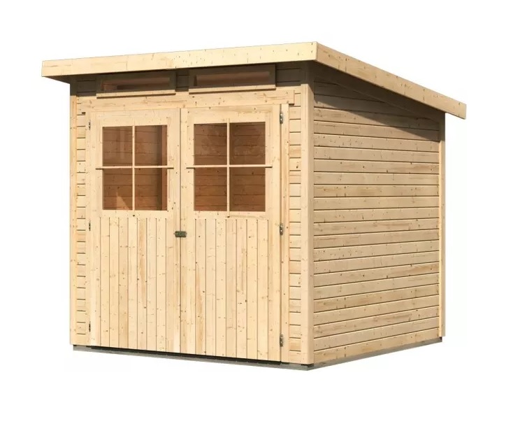 Základný model dreveného domčeka pre vašu záhradu. Tento model má pultovú strechu a dvojkrídlové dvere na pántoch s oknom v každom krídle. Stavebným materiálom domčeka sú drevené profily hrúbky 19 mm perfektne vyfrézované zo severského smreka. Dodávame ako stavebnicu v rozloženom stave, kde steny tvoria jednotlivé drevené profily, ktoré iba zosadíte k sebe a zoskrutkujete, strechu tvorí celistvá doska. To garantuje extrémne jednoduchú montáž, ktorú zvládne každý domáci majster.
