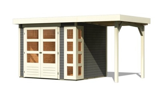Drevený domček KARIBU KERKO 3 + prístavok 150 cm (23515) terragrau LG2951