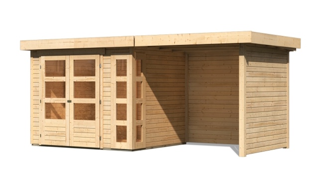 Drevený domček KARIBU KERKO 3 + prístavok 240 cm vrátane zadnej a bočnej steny (82934) natur LG2956