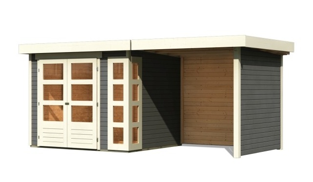 Drevený domček KARIBU KERKO 3 + prístavok 240 cm vrátane zadnej a bočnej steny (82935) terragrau LG2957