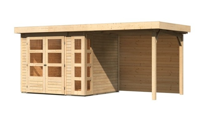 1670.69 Drevený domček KARIBU KERKO 3 + prístavok 240 cm vrátane zadnej steny (9185) natur LG2954