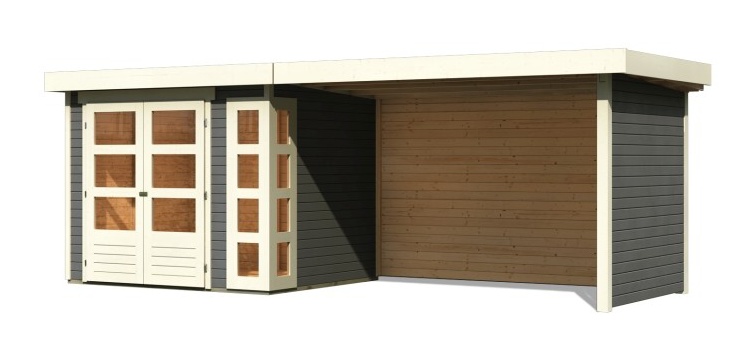 Drevený domček KARIBU KERKO 3 + prístavok 280 cm vrátane zadnej a bočnej steny (82939) terragrau LG2963